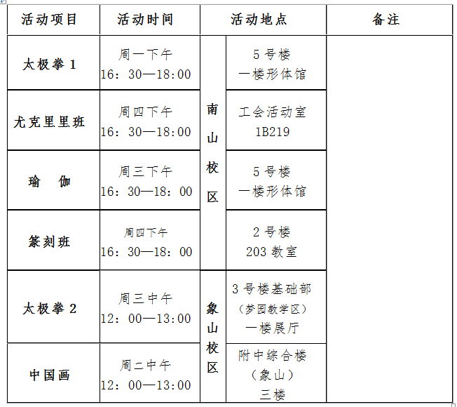 关于继续开办 “太极拳”、“瑜伽” 及“尤克里里”等兴趣班的通知